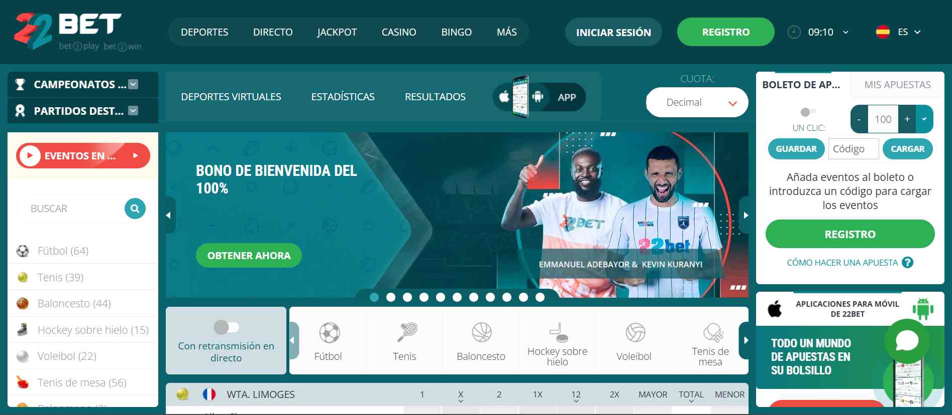 Disfruta de la variedad deportiva que ofrece 22bet y complementa la experiencia con las mejores bonificaciones, la plataforma que se convertirá en tu mejor opción para apostar. El operador de apuestas 22Bet opera en más de 60 países y se adapta perfectamente a cada uno de ellos, México no es la excepción. En esta reseña te revelaremos toda la información y detalles que necesitas conocer para comenzar a apostar.