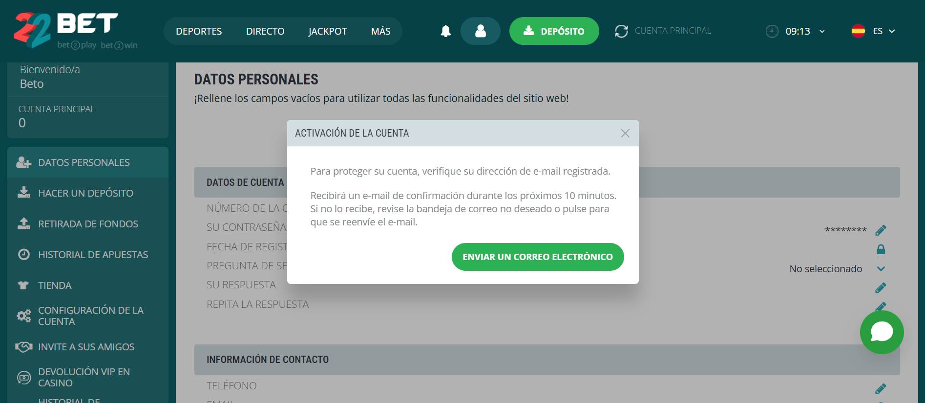 | Correo Electrónico | support-es@22bet.com; security@22bet.com |