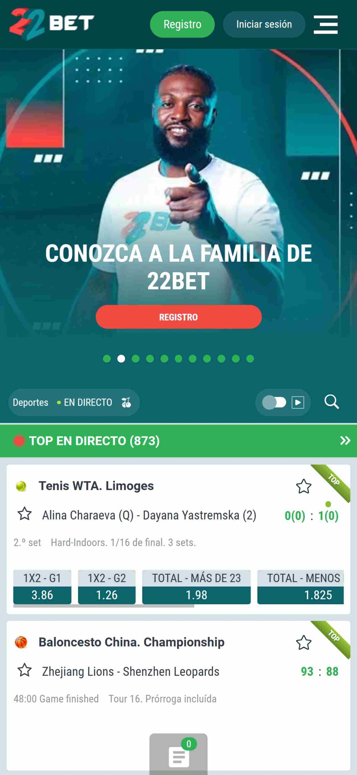 Una de las mejores maneras de disfrutar una apuesta es hacerlas en vivo. 22Bet hace posible esta opción con su sección “DIRECTO”, donde no solo podrás hacer tus apuestas mientras ocurre el partido sino que podrás verlo gracias a la retransmisión que brindan y también hacer apuestas más acertadas con los datos de 22Bet,