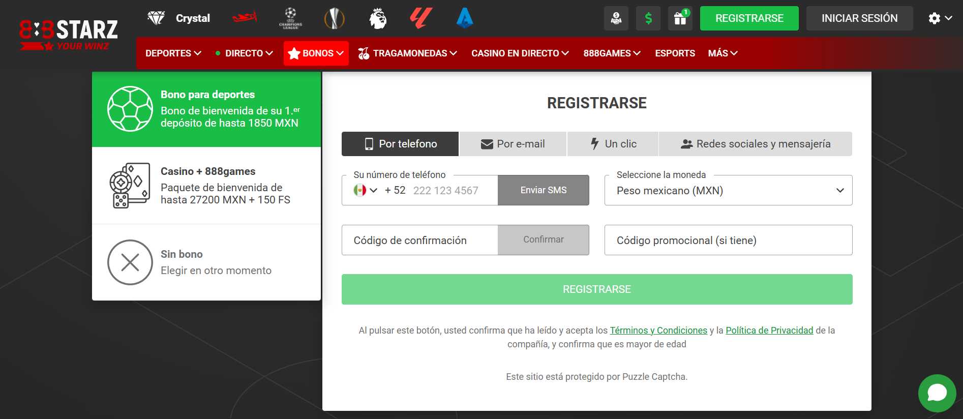Las posibilidades de ganar desde el primer acceso se vuelven realidad con 888Starz. La plataforma ofrece un bono de bienvenida del 100% hasta 1850 MXN, la elección de qué tan alto puede ser este bono es tuya porque se basa en la cantidad que deposites, empezando por 185 MXN.