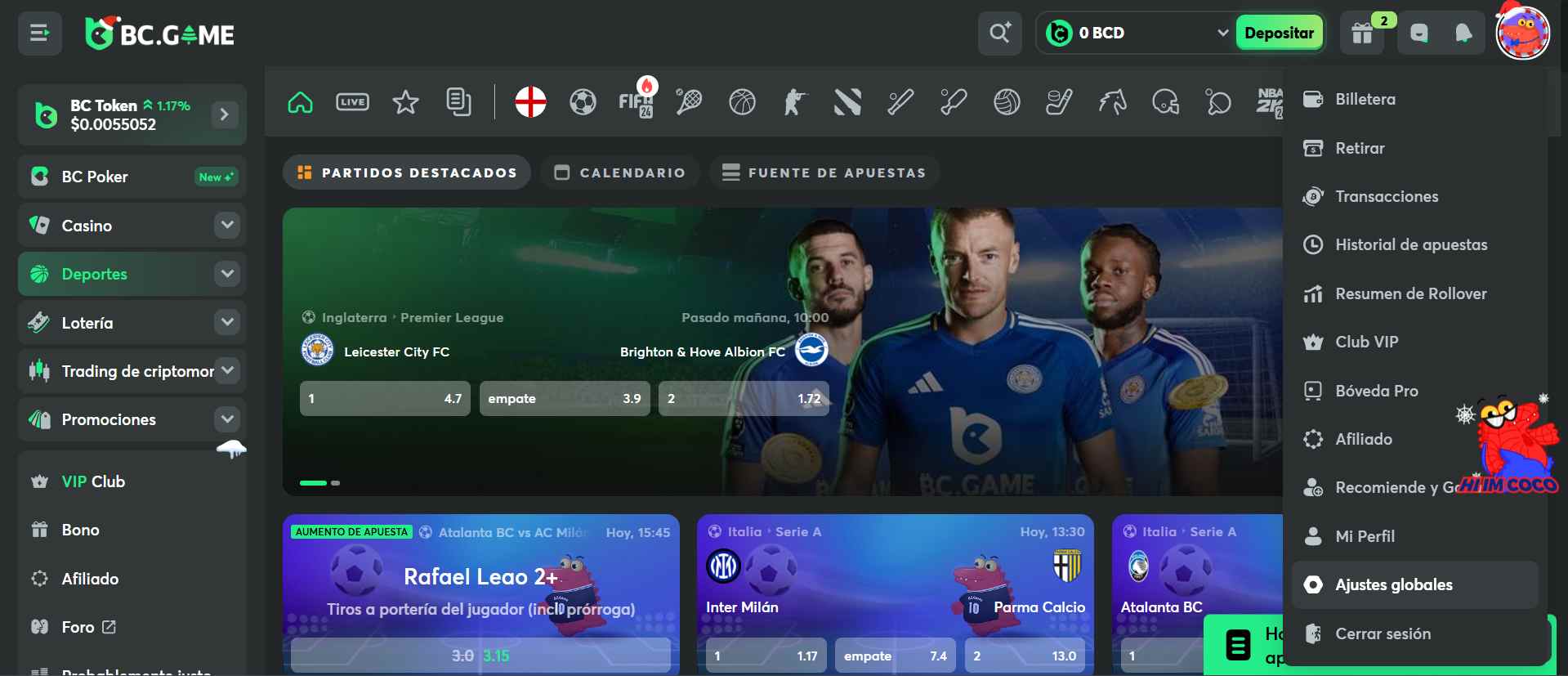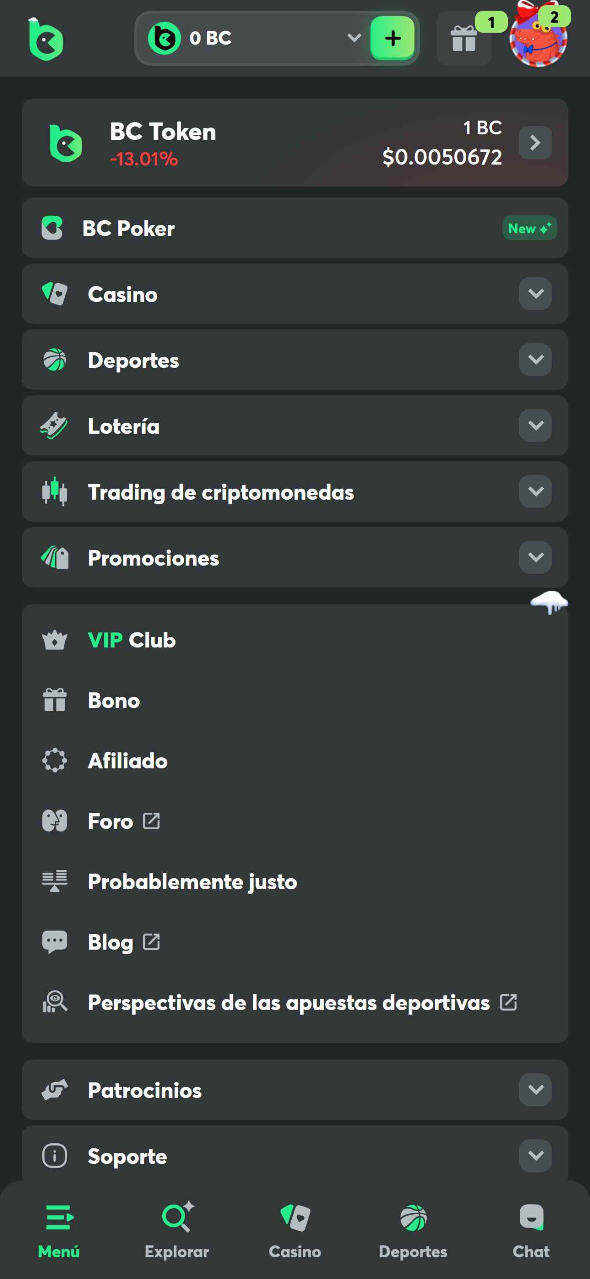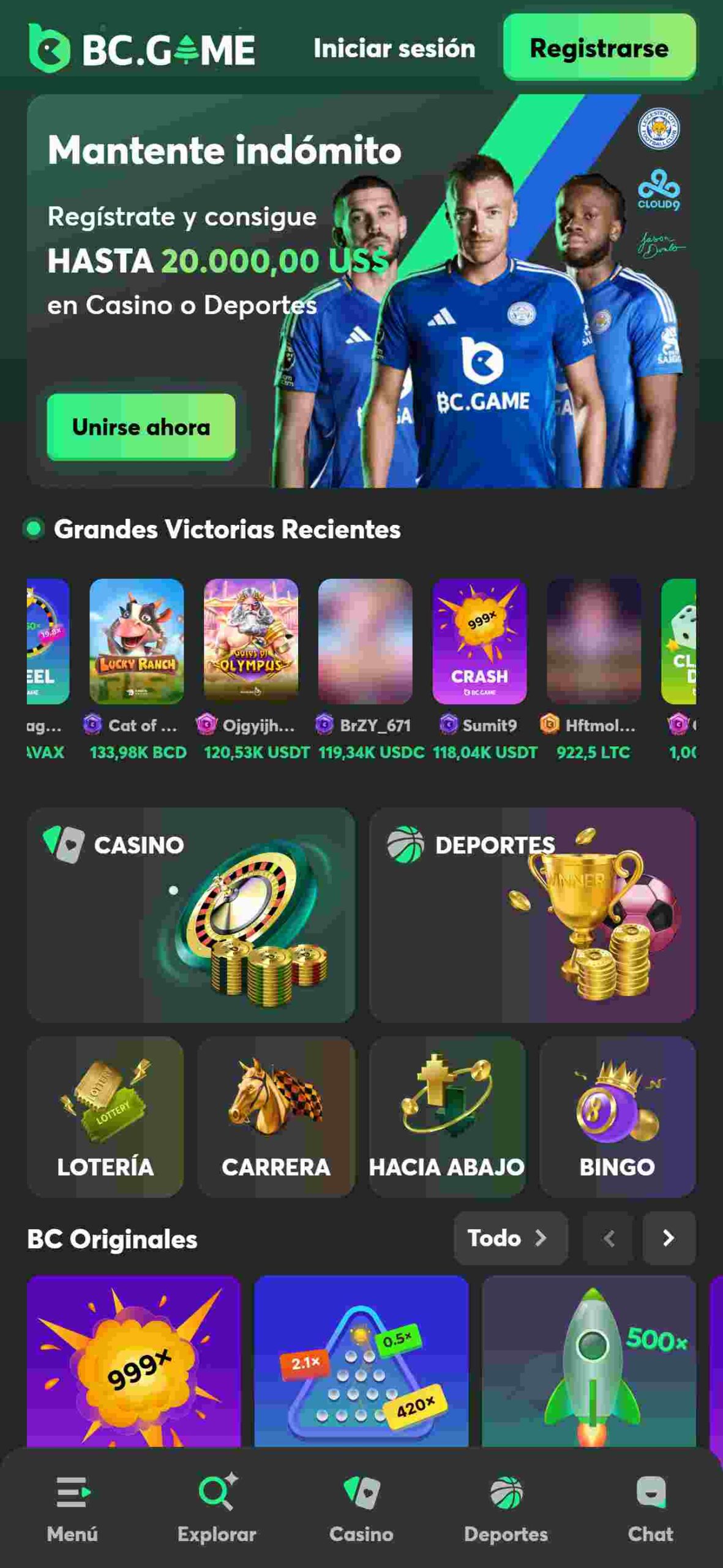 BC.Game no tiene uno de los diseños más originales de todo, pero lo que sí resulta ser es intuitivo. La plataforma cuenta un menú principal de navegación, lo que facilita la experiencia, permitiendo que el usuario indague en las distintas secciones de manera rápida y sin complicaciones.