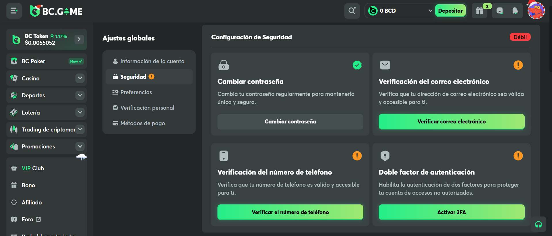 En términos de seguridad, BC.Game utiliza tecnología avanzada, como sistemas de protección para datos y autenticador de dos factores con Google. Aparte, fomenta el juego responsable y ayuda al usuario a gestionar mejor sus actividades de juego.