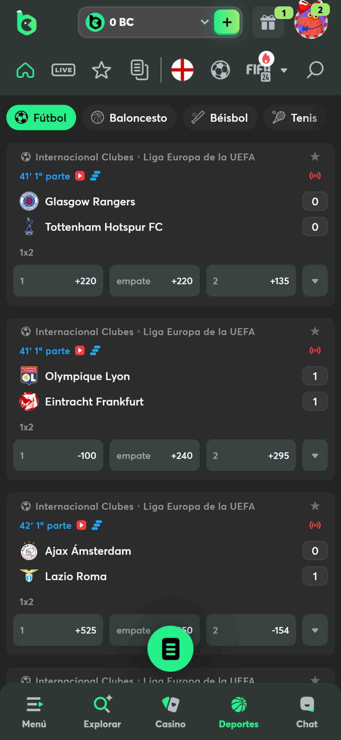 BC.Game maneja una variedad de deportes impresionantes. La casa de apuestas ofrece más de 30 deportes, donde puedes encontrar las disciplinas más populares como fútbol, tenis, baloncesto, hockey sobre hielo, eSports hasta opciones como deportes virtuales, para a quienes les gustan las apuestas rápidas y dinámicas, dardos, snooker y otros.