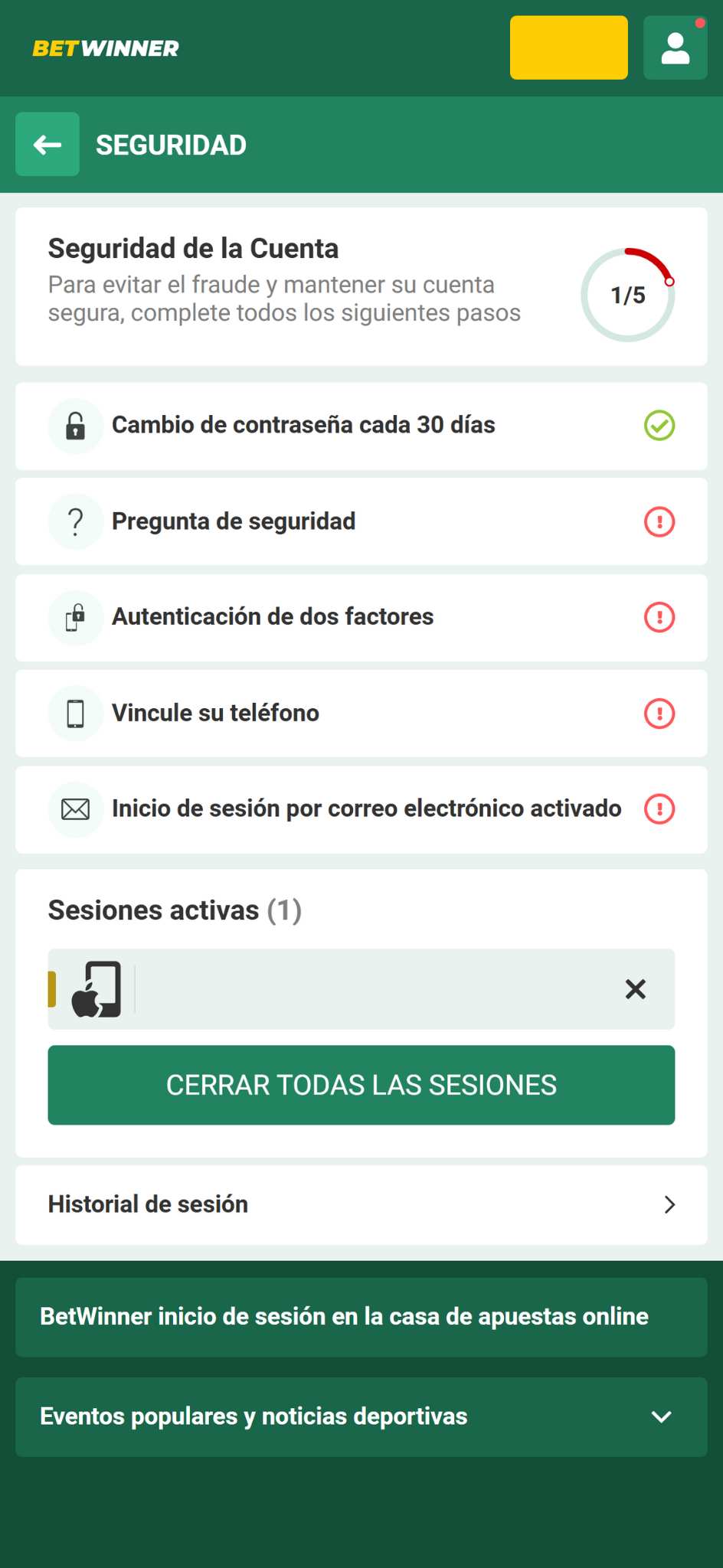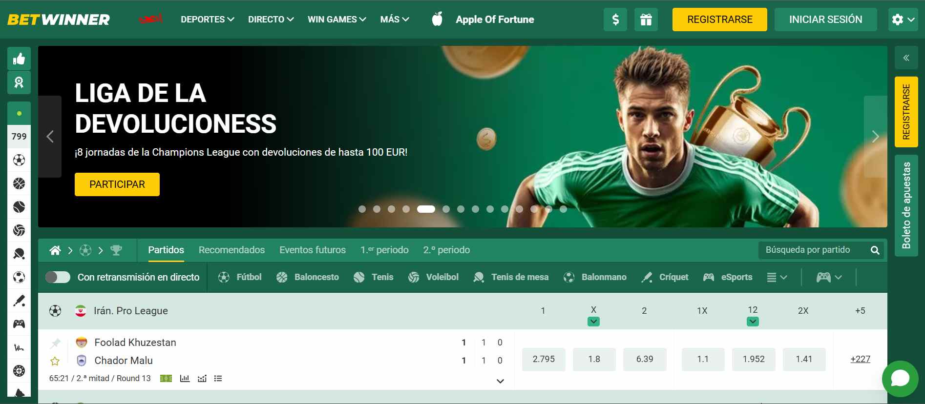 Deportes y Mercados en Betwinner4.5/5