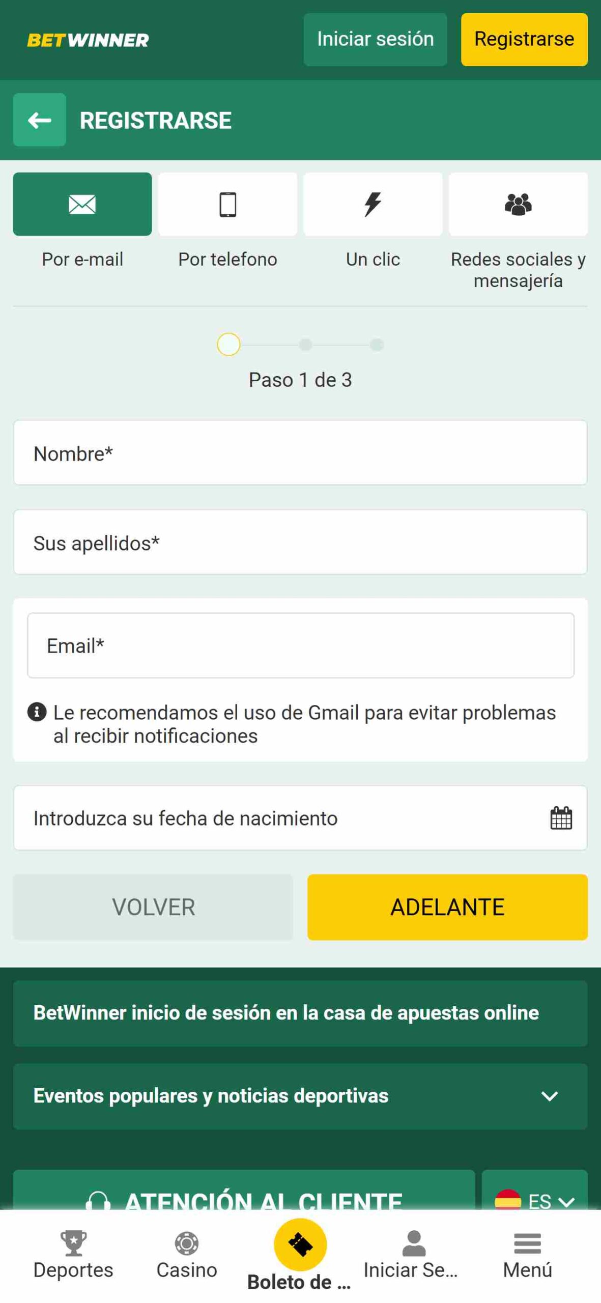 Cómo registrarse en Betwinner4.5/5