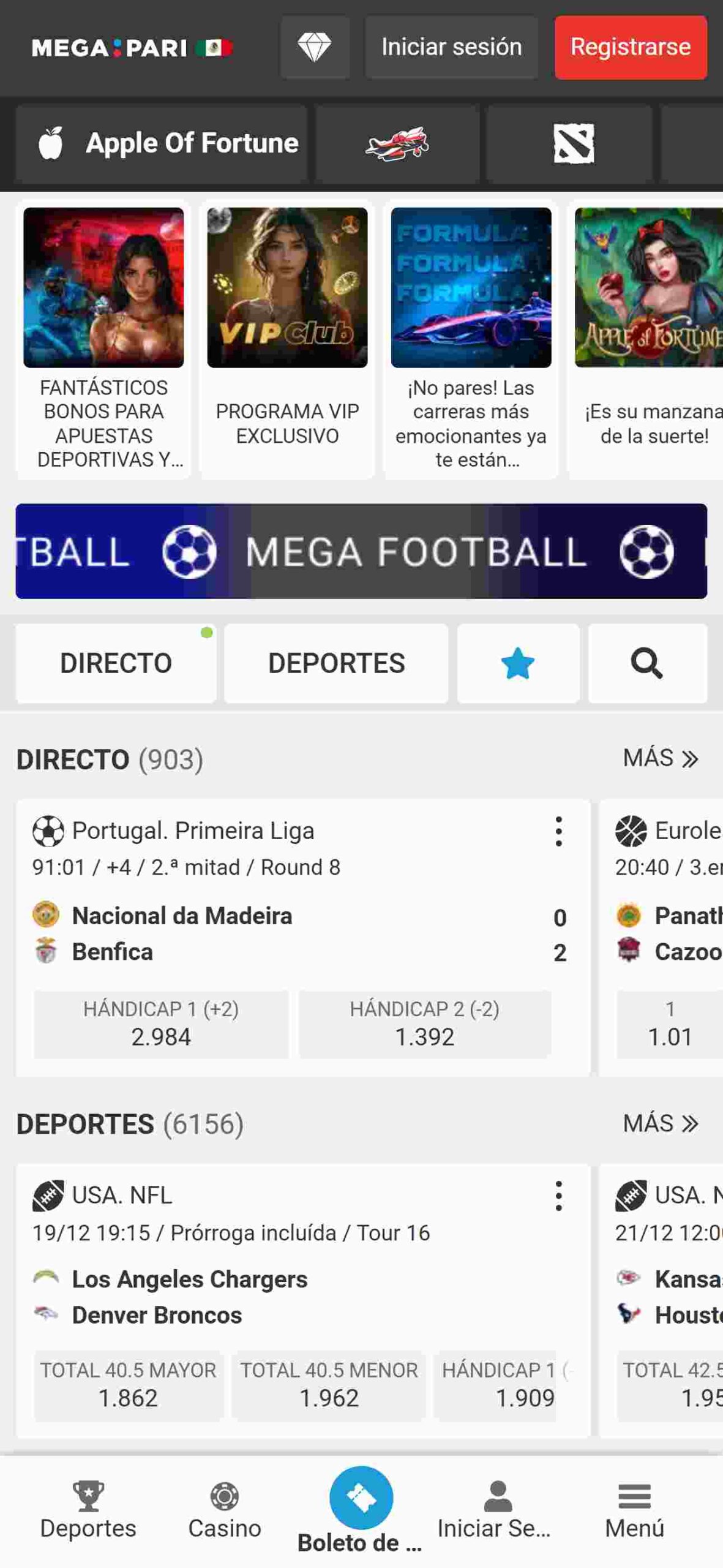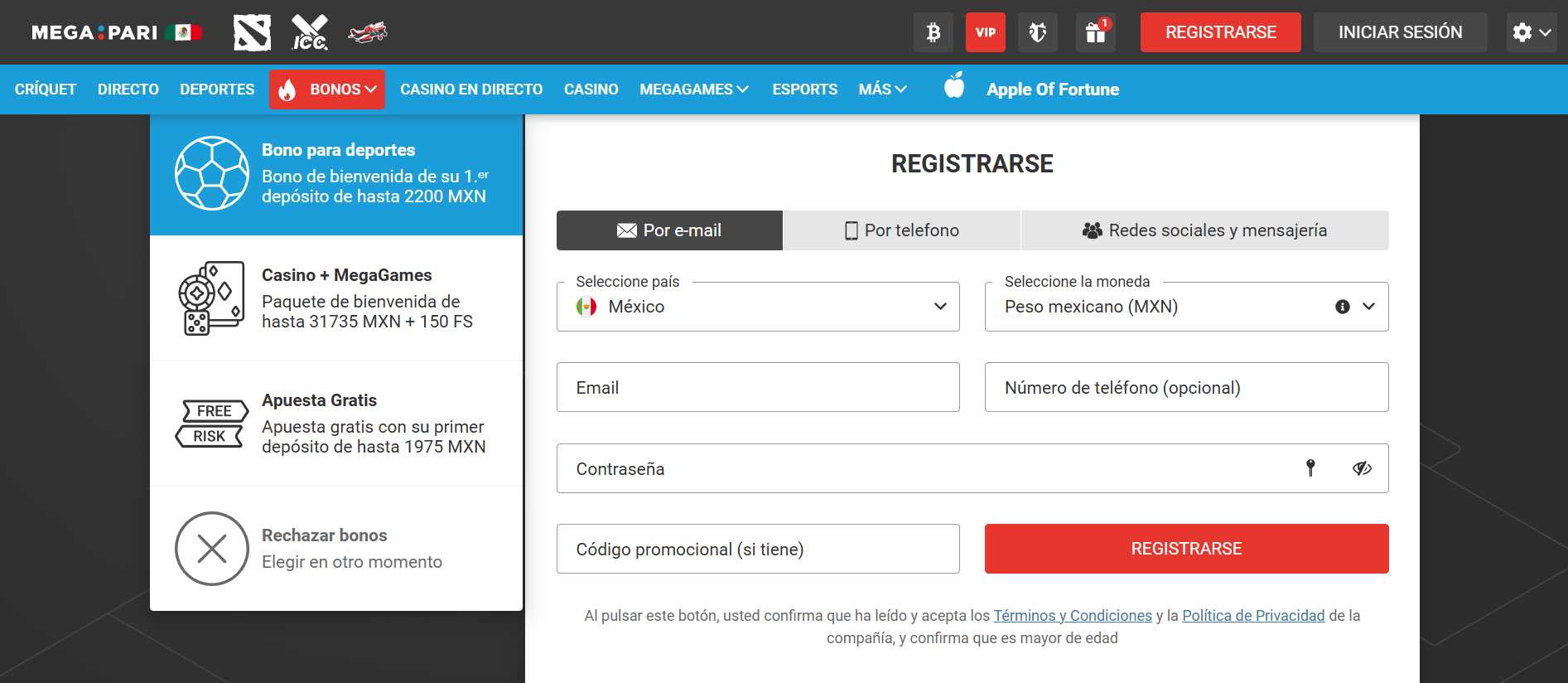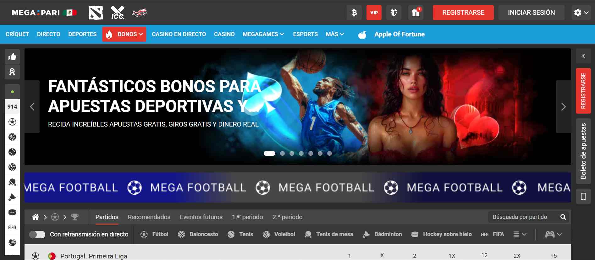 Y si eres de los fanáticos de los deportes virtuales por su rapidez, Megapari tiene una sección donde podrás encontrar fútbol, tenis, carreras y otros deportes.