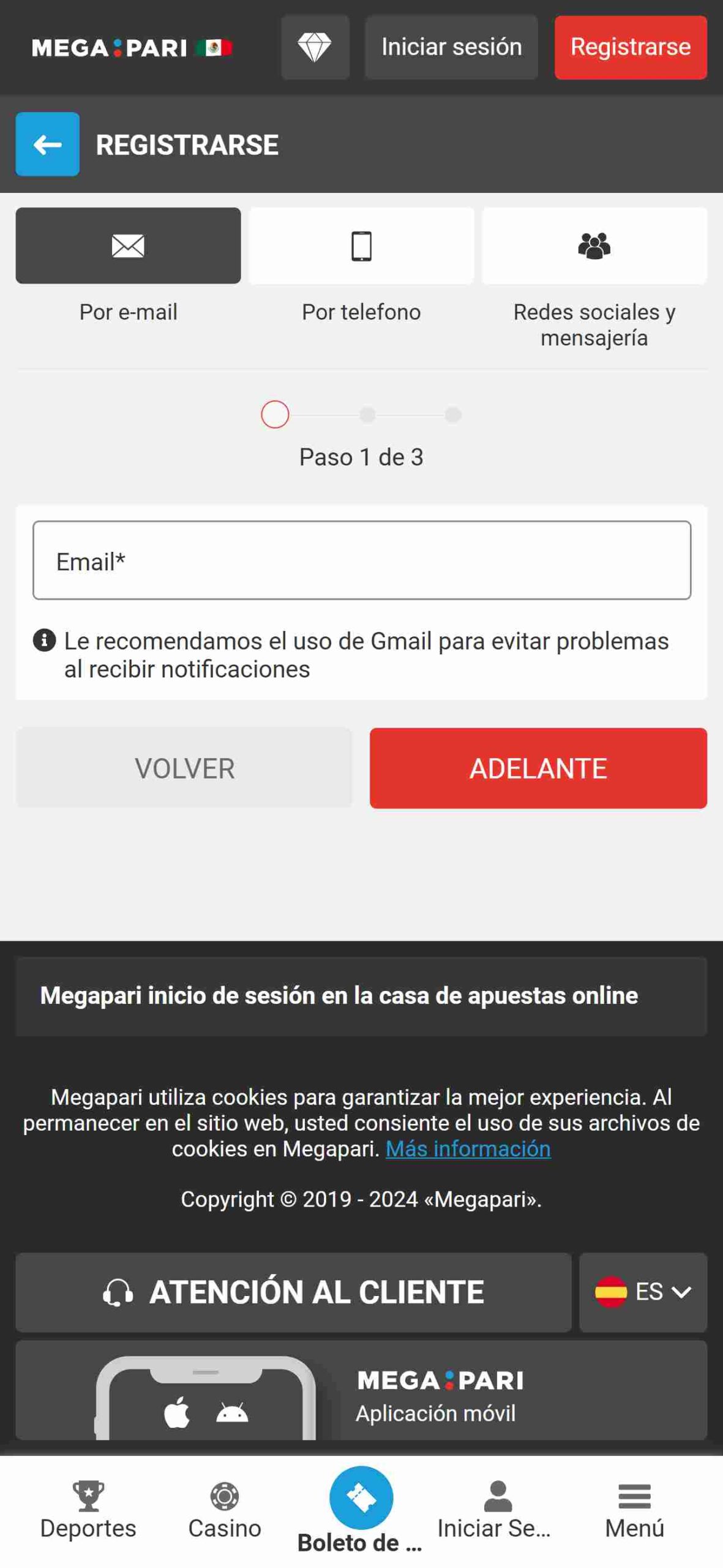 Dirígete hacia el final de la página principal e ingresa al enlace “contacto”. Una vez dentro, notarás que Megapari ofrece distintos correos electrónico como soporte@megapari.com, números de teléfono, canales de telegram y otras comunidades por medio de redes sociales. También, Megapari ofrece un espacio para escribir por medio de la página.