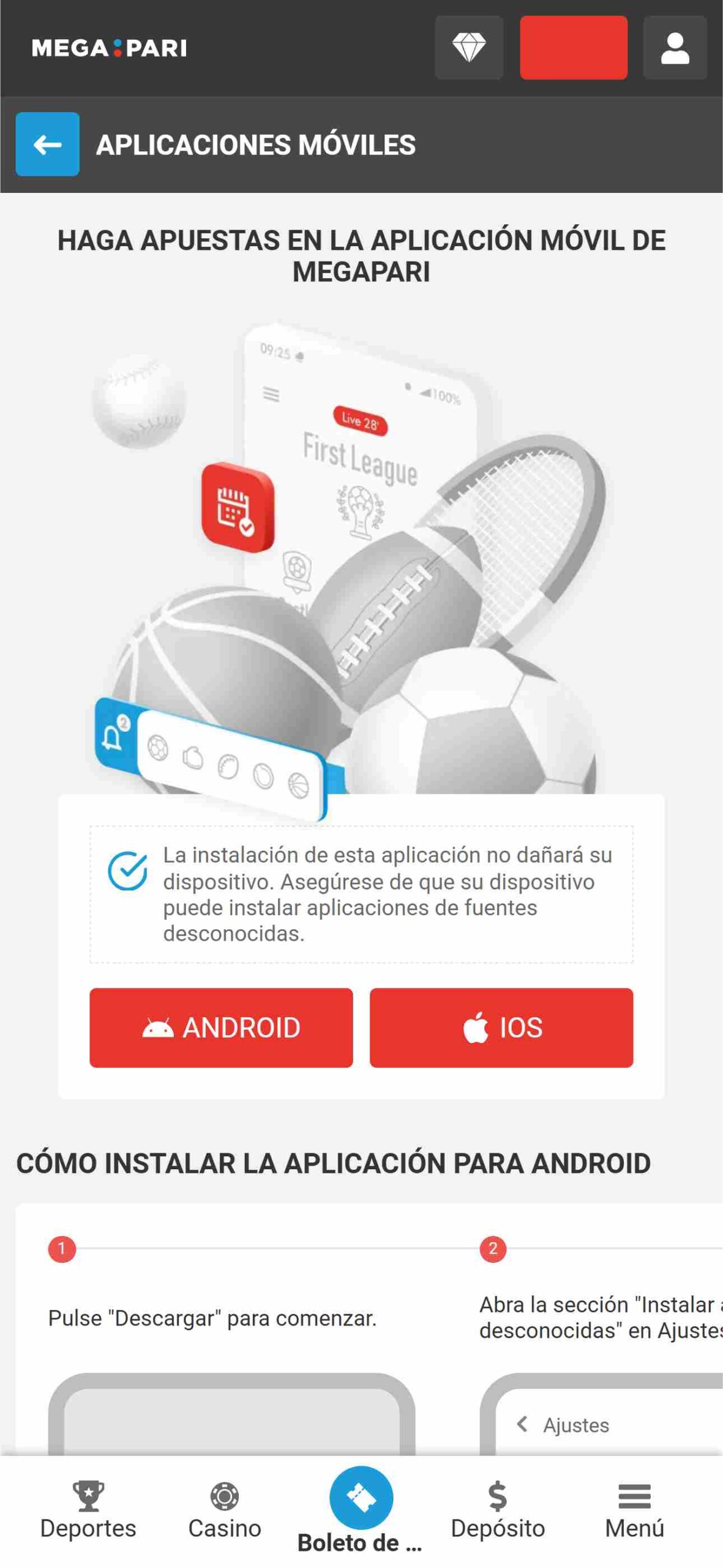 ¿Disfrutas de las apuestas móviles? Megapari se encarga de hacerte las apuestas mucho más fáciles con su app móvil. La aplicación, disponible para sistema operativo Android y iOS, reúne todas las características y funciones del sitio web para brindar una mejor experiencia de apuesta. Además, con la app puede recibir notificaciones inmediatas y enterarte sobre los nuevos agregados al sitio.