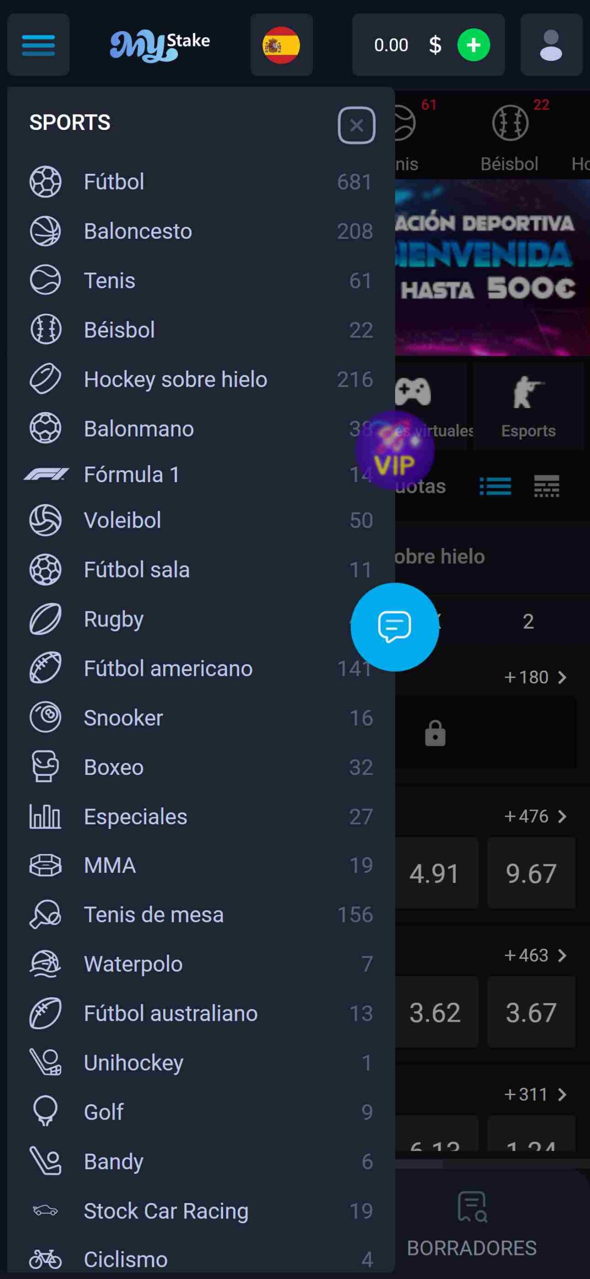 Mystake podría ser el paraíso de los juegos de apuestas para cualquier aficionado. La sección deportiva cuenta con no menos de 35 disciplinas y también ofrece apuestas especiales si estás interesado en esas. Mystake ofrece más de 1000 eventos parafútboll y una gran variedad de mercados, pero estos también se extienden a otros deportes tales como: