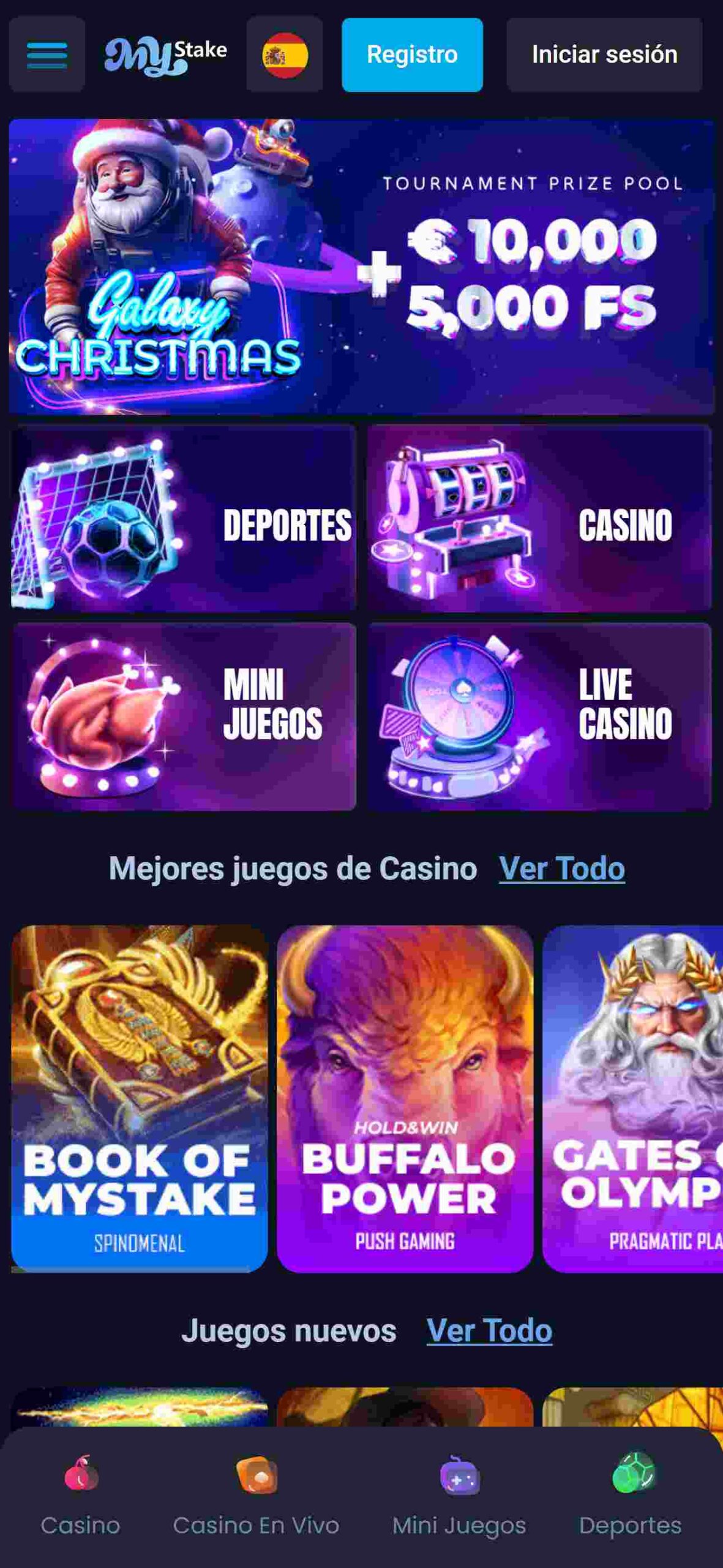 El diseño de esta casa de apuestas es una buena combinación de estética y funcionalidad. La interfaz maneja colores oscuros, pero sus imágenes de bonos tienen el color justo para llamar tu atención de inmediato, todo esto mientras te ofrece una navegación sencilla que te permitirá explorar las diferentes opciones que tiene Mystake de manera rápida.