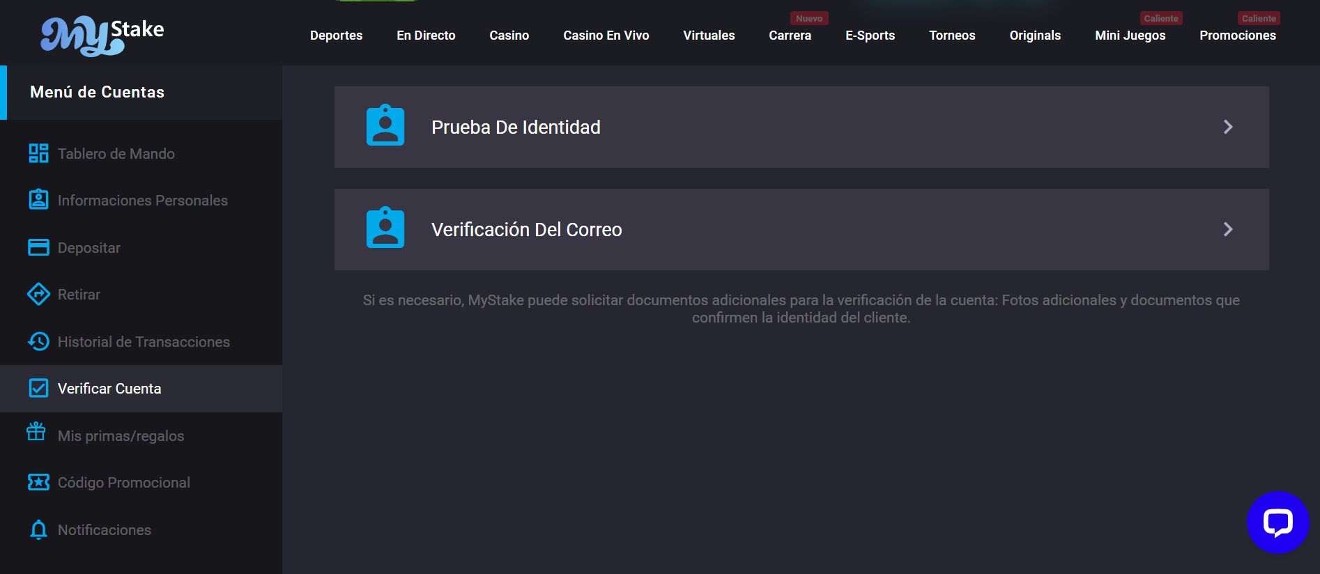MyStake ofrece atención al cliente a través de chat en vivo (las 24/7) y correo electrónico (support@mystake.email). Sin embargo, el chat en vivo es atendido por un bot y está limitado a temas específicos, además de no estar disponible en español.