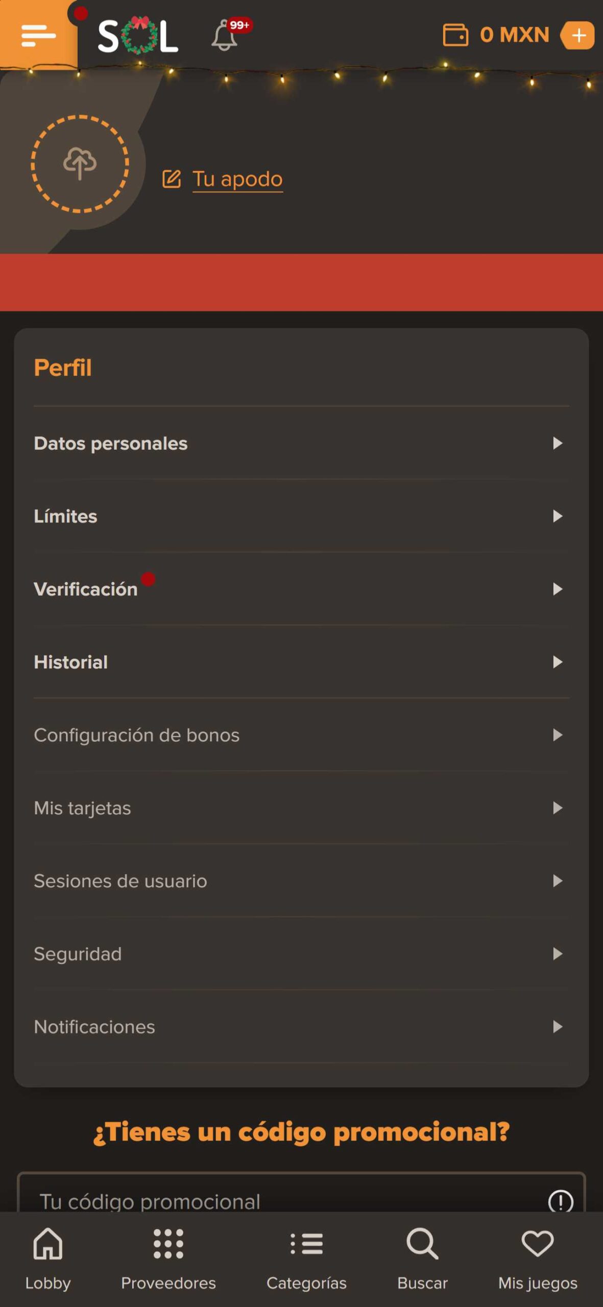 La plataforma se encuentra muy bien organizada con menú superior para los ítems destacados y un menú lateral donde puedes hallar bonos y promociones, tu perfil, depósito, notificaciones y otras funciones. También cuenta con una barra de búsqueda para que la navegación sea fluida y rápida. Cada una de estas funciones están disponibles tanto en la versión de escritorio y móvil como en la aplicación.